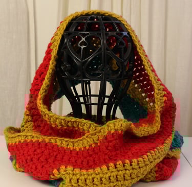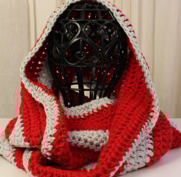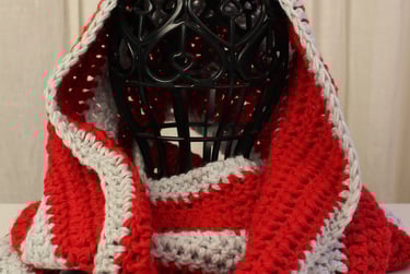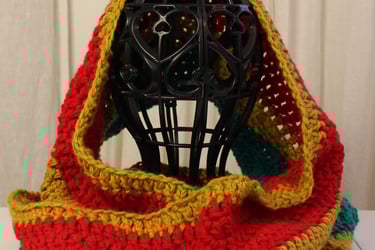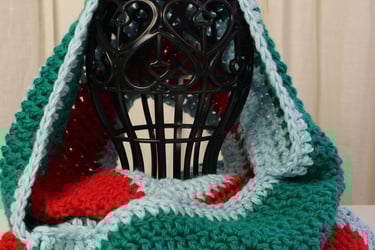 My new Yuletide Snood Collection is a heartfelt tribute to these timeless Yule colors and the spirit they embody. Crafted with soft acrylic yarns in festive stripe patterns featuring shades of red, green, gold, white and blue, these snoods are designed to not only keep you warm but also connect you with the magic of the season.